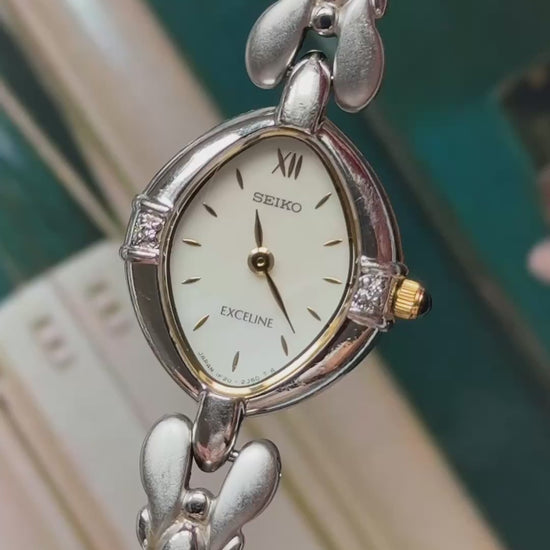 Seiko Exceline 1999 vintage watch - Mother of pearl dial with diamonds