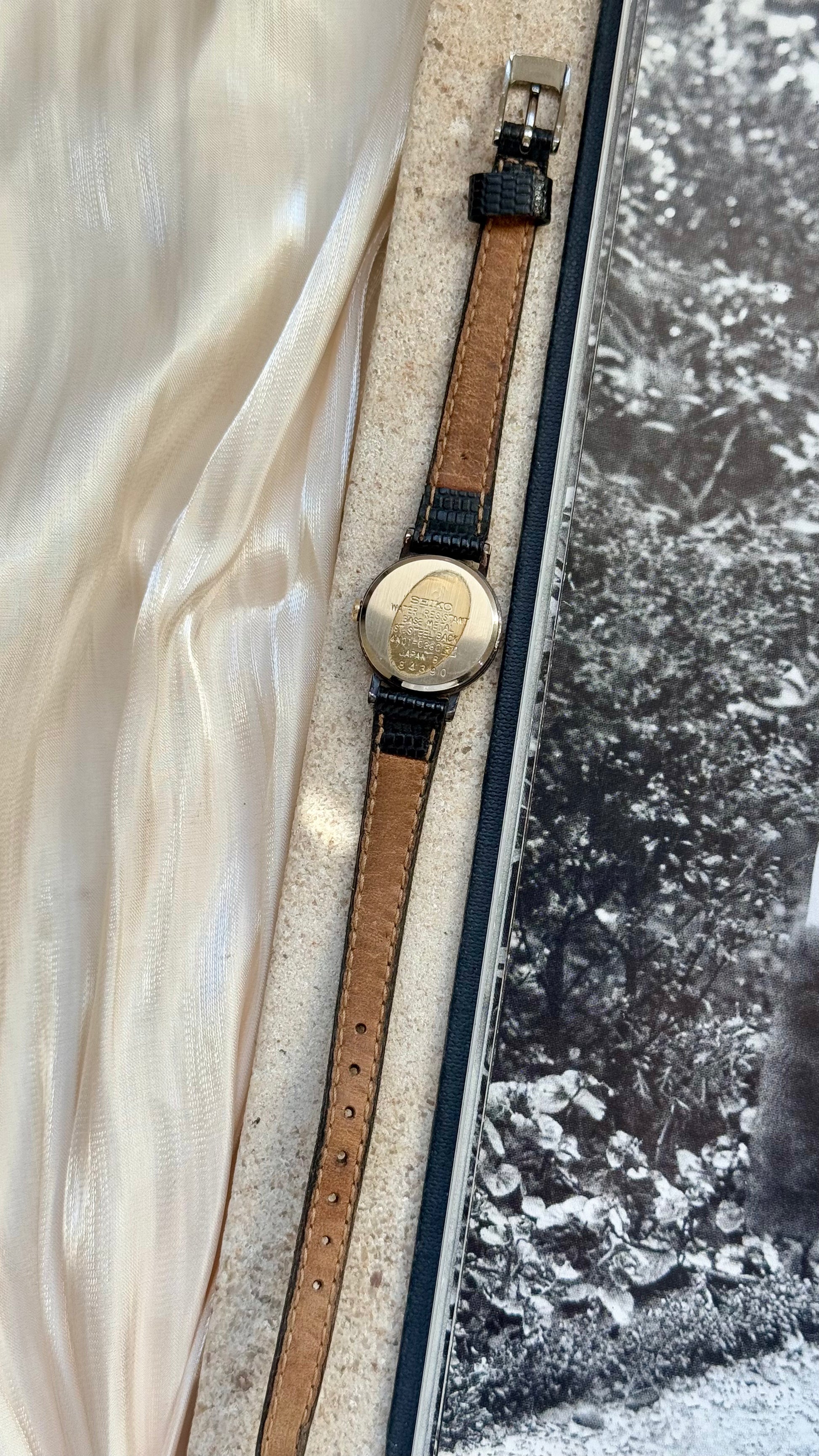 • Bracelet is original genuine leather by Seiko, has signs of wear.